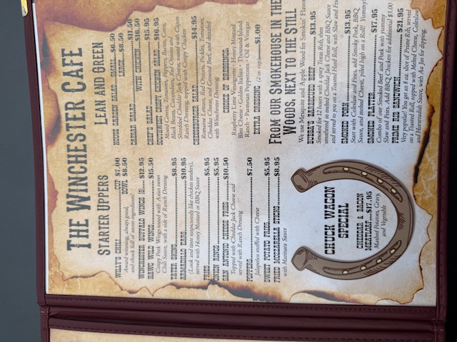 Winchester Cafe Menu